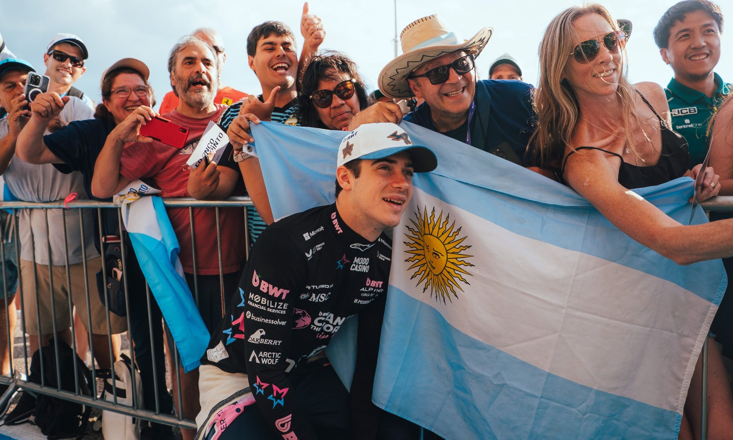 Colapinto junto a los fanáticos argentinos. Se espera que cientos vayan a Brasil para la carrera del próximo fin de semana