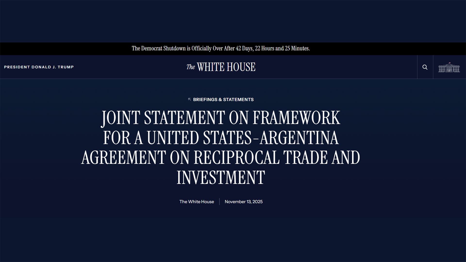 El Gobierno de Estados Unidos anunció un acuerdo comercial con Argentina